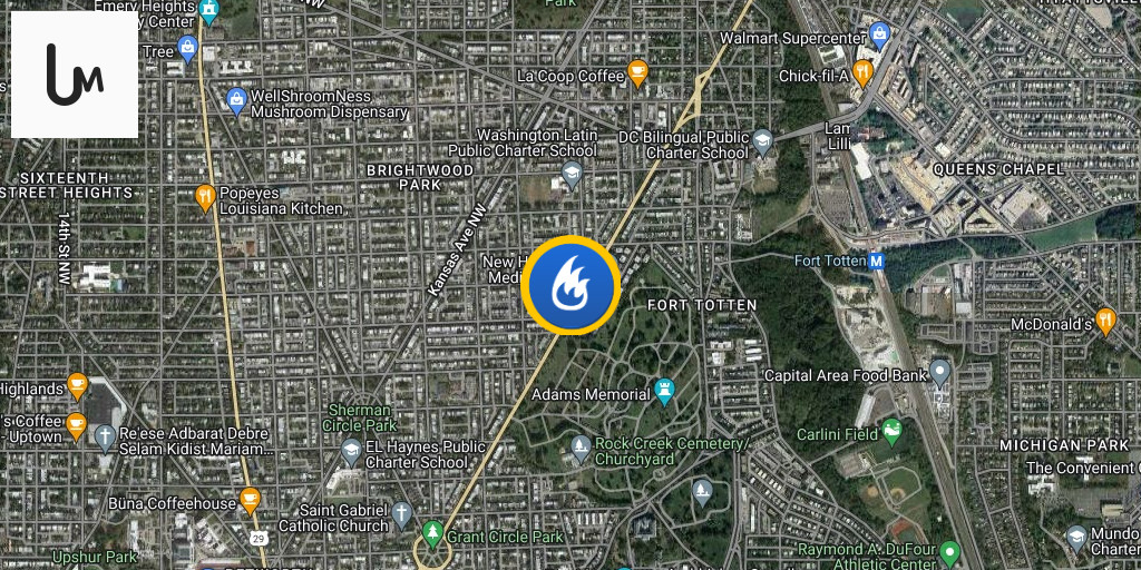 Box Alarm 5000 block 1st St NW. Fire around furnace between 1st and 2nd floor. Units opening up to determine extent of fire. An additional truck and air unit requested. DC firefighters