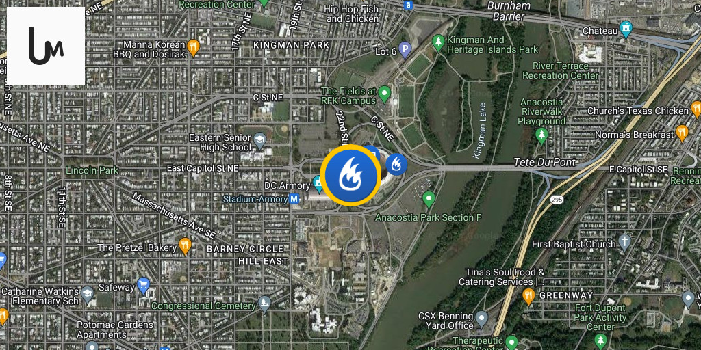 Smoke Investigation at RFK Stadium with Box Alarm RequestEmergency Services are currently responding to a smoke investigation at RFK Stadium located at 2400 East Capitol Street, Northeast, Washington, D.C. Truck 17 has identified a fire within the stadium.