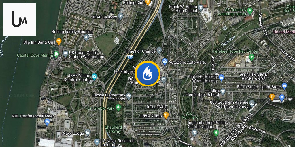 Box Alarm 4000 block 1st St South-West Fire showing 1st floor 2 story row. Report of person trapped. DC firefighters