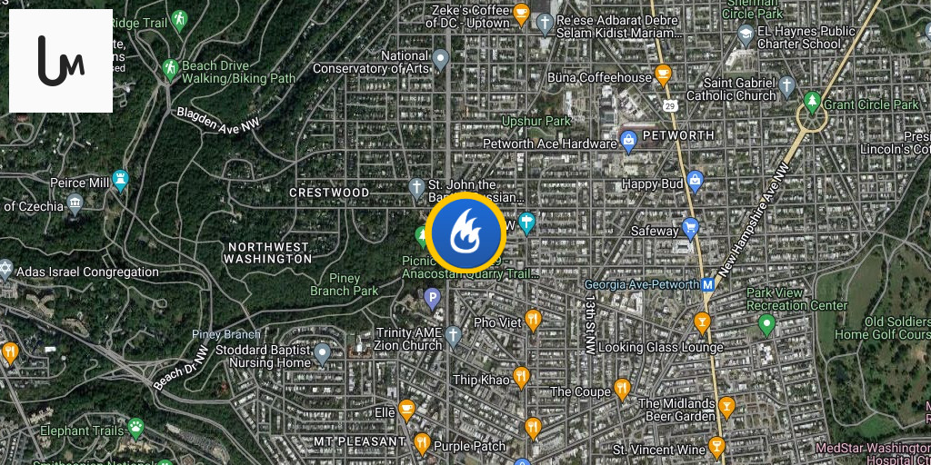 Box Alarm: 3900 Block of 14th Street NW - Two story commercial establishment with smoke showing from the roof upon arrival and fire in first floor kitchen. All fire was extinguished quickly. Working on hotspots and checking for extension. No injuries to report