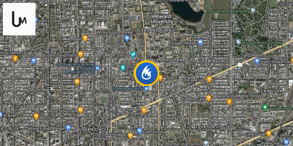 Box Alarm 1700 block Florida Ave NW. Fire on roof 1 story commercial building. DC firefighters