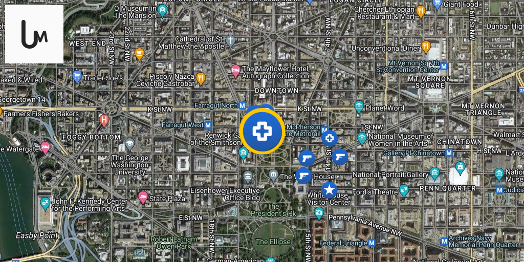 DOWNTOWN DC DEATH INVESTIGATION: Franklin Park, 14th Street and K Street NW in Downtown Washington DC- victim pronounced dead after being found in cardiac arrest by DC Police on the corner of 14th & K Streets NW.