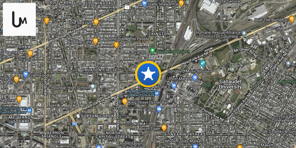 Large police response happening right now on New York Ave NE at Florida Ave, which is near Washington DC’s NoMa neighborhood.