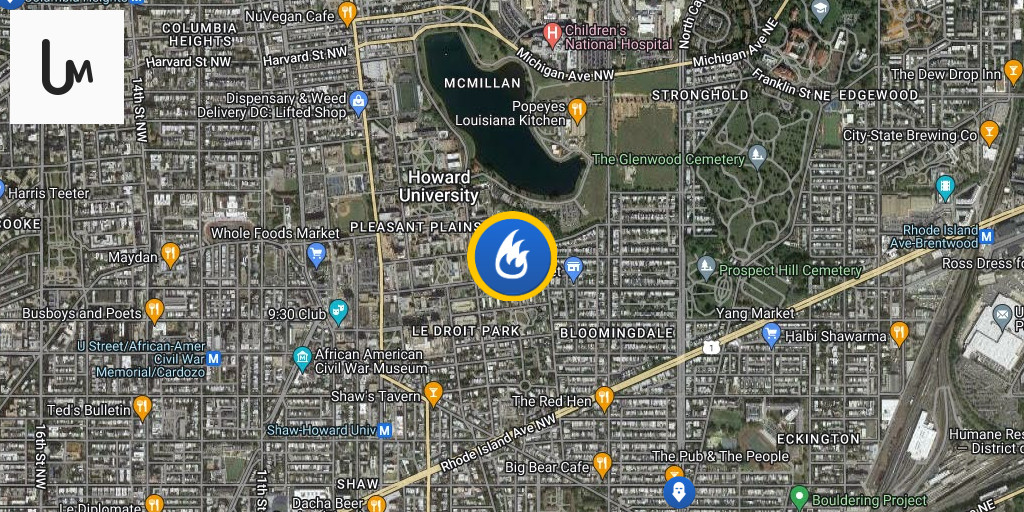 Box Alarm unit block M St NE. Fire 8th floor apartment with sprinkler activation. Fire knocked down. Checking for extension. DC firefighters