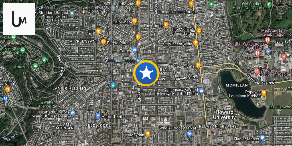 Report of upwards of 50 shots fired just now at 14th Street and Irving Street Northwest in Washington DC.