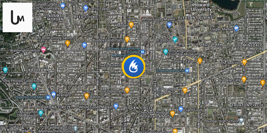 Box Alarm 1300 block S St NW. Smoke showing 1st floor 3 story structure. DC firefighters